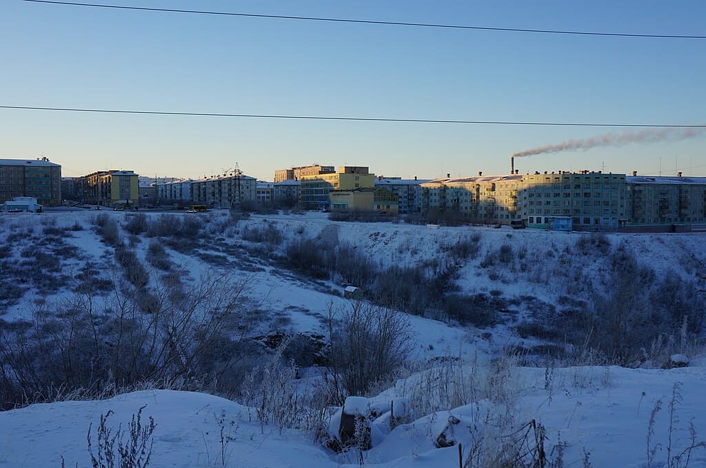 Norilsk lies above the Arctic Circle and is one of the northernmost cities of its size in the world. Winter temperatures average around −30°C, with prolonged cold spells pushing readings to −45°C. Snow covers the city for roughly nine months each year, and powerful winds frequently produce dangerous wind chill values. Norilsk is also extremely isolated, with no road access connecting it to the rest of Russia. Industrial activity dominates the economy, and residents endure polar night, where the sun does not rise for up to six weeks. Despite harsh conditions, the city maintains a population of over 175,000 people who adapt through insulated housing, enclosed walkways, and strict cold-weather routines.