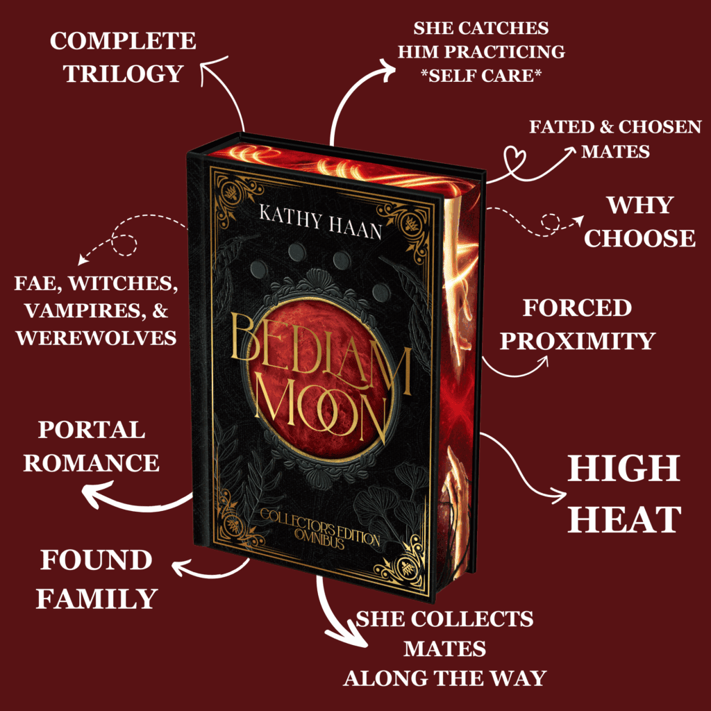 The Bedlam Moon Trilogy is about a 34 year old who has no idea she’s a witch until she bumps into the vampires next door. After she’s built a family with them, she’s forced to go to the fae realm without them. No one ever told her not to make a fae deal, or that it’d cost her everything. Now, the vampire mates she doesn’t remember are bringing war to the fae realm to get her back. Neurodivergent, disabled female owner