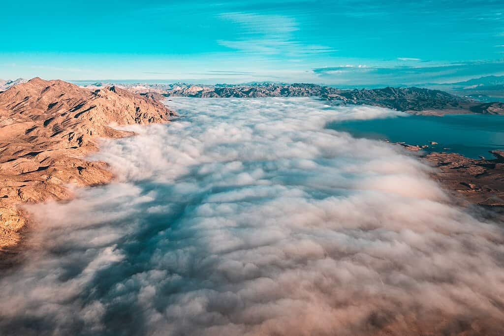 St. Thomas was a thriving Mormon settlement with a population of around 500 in the 1930s. The town was abandoned and submerged during the creation of Lake Mead after the Hoover Dam project in 1935. During droughts, up to 40% of the original town’s structures, including stone foundations, old streets, and building remnants, emerge above the water. Visitors walking along the exposed areas often describe an uncanny experience, imagining the bustling life that once existed. Its visibility varies depending on lake levels, typically dropping below 1,050 feet above sea level.