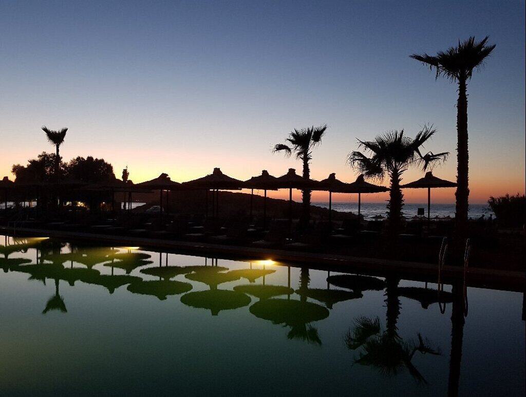 Just 1 mile from Chania’s Venetian old town, Domes Zeen blends coastal calm with easy urban access. The 100-room resort stretches along 1,200 feet of sandy shoreline and emphasizes eco-conscious design using bamboo and reclaimed timber. Rooms average 300 square feet, while higher categories include private pools up to 200 square feet. Family programming runs daily in summer. High-season rates begin around $350 per night.