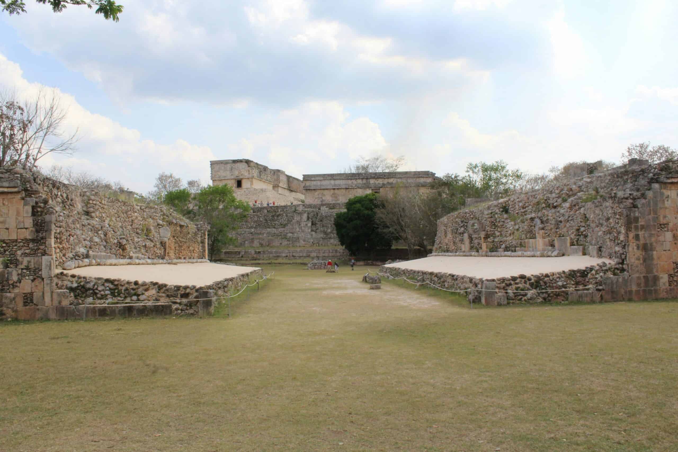 A ballgame court appears in the mapped core, a reminder that Maya cities built sport, ritual, and politics into the same public calendar. The rubber-ball game carried symbolic weight across Mesoamerica, so a court is rarely just recreation; it signals trained players, spectators, and leaders who used spectacle to bind alliances and settle rivalries. At Ocomtún, the court sits beside plazas and tall platforms, placing competition in the middle of civic life, where stories, wagers, and ceremonies could move as quickly as the ball itself across worn stone. It suggests a community large enough for festivals and specialists here.